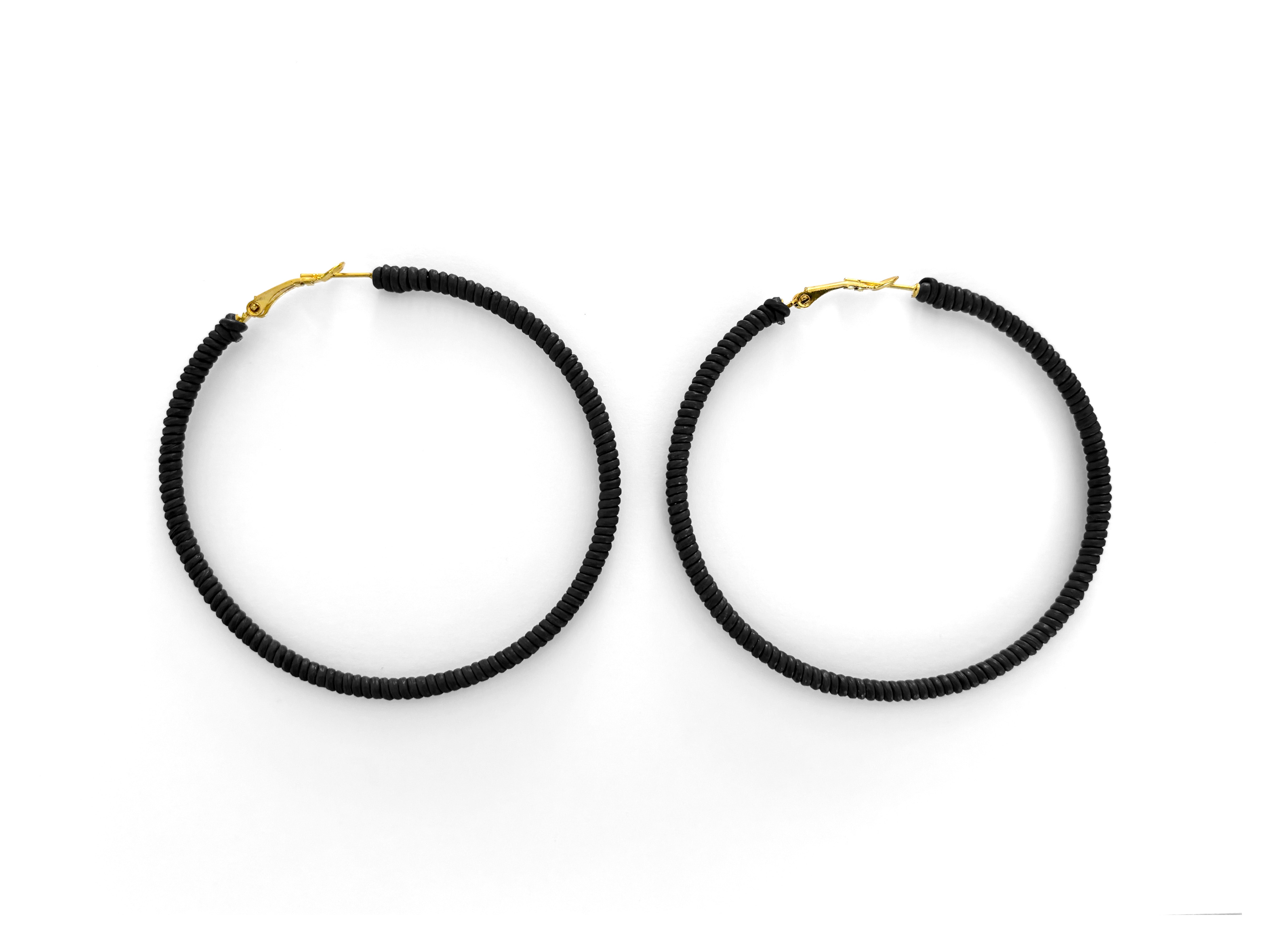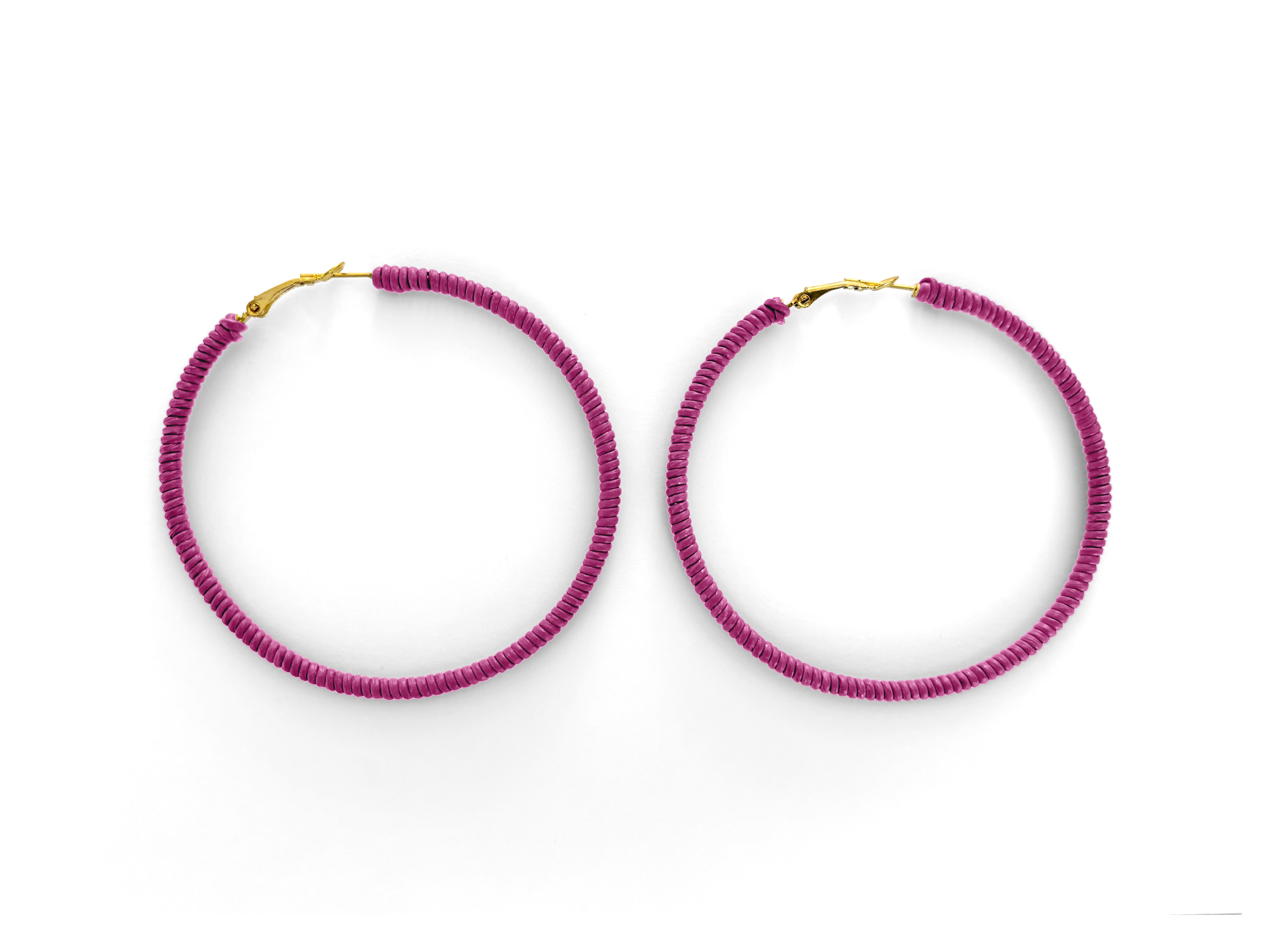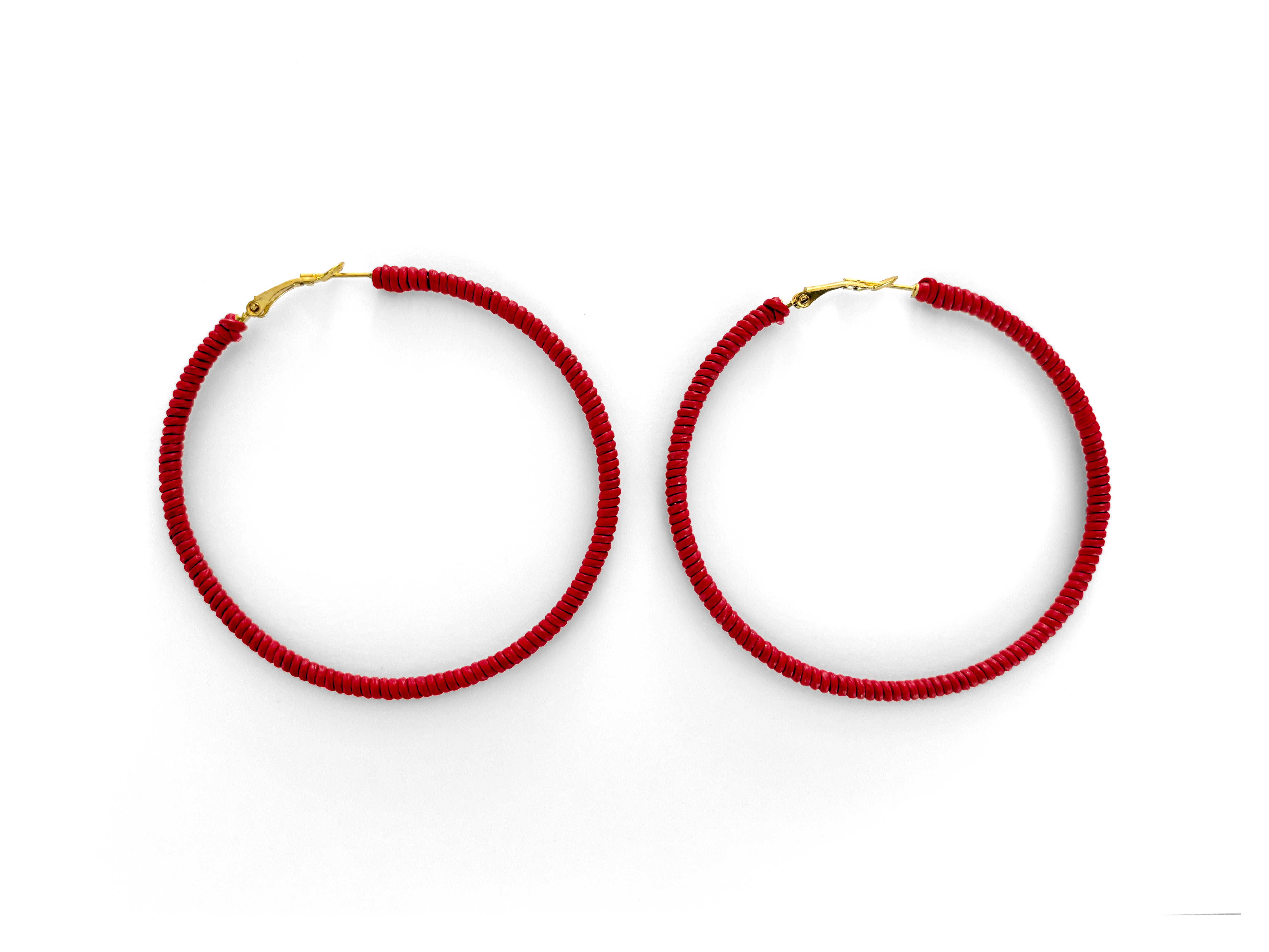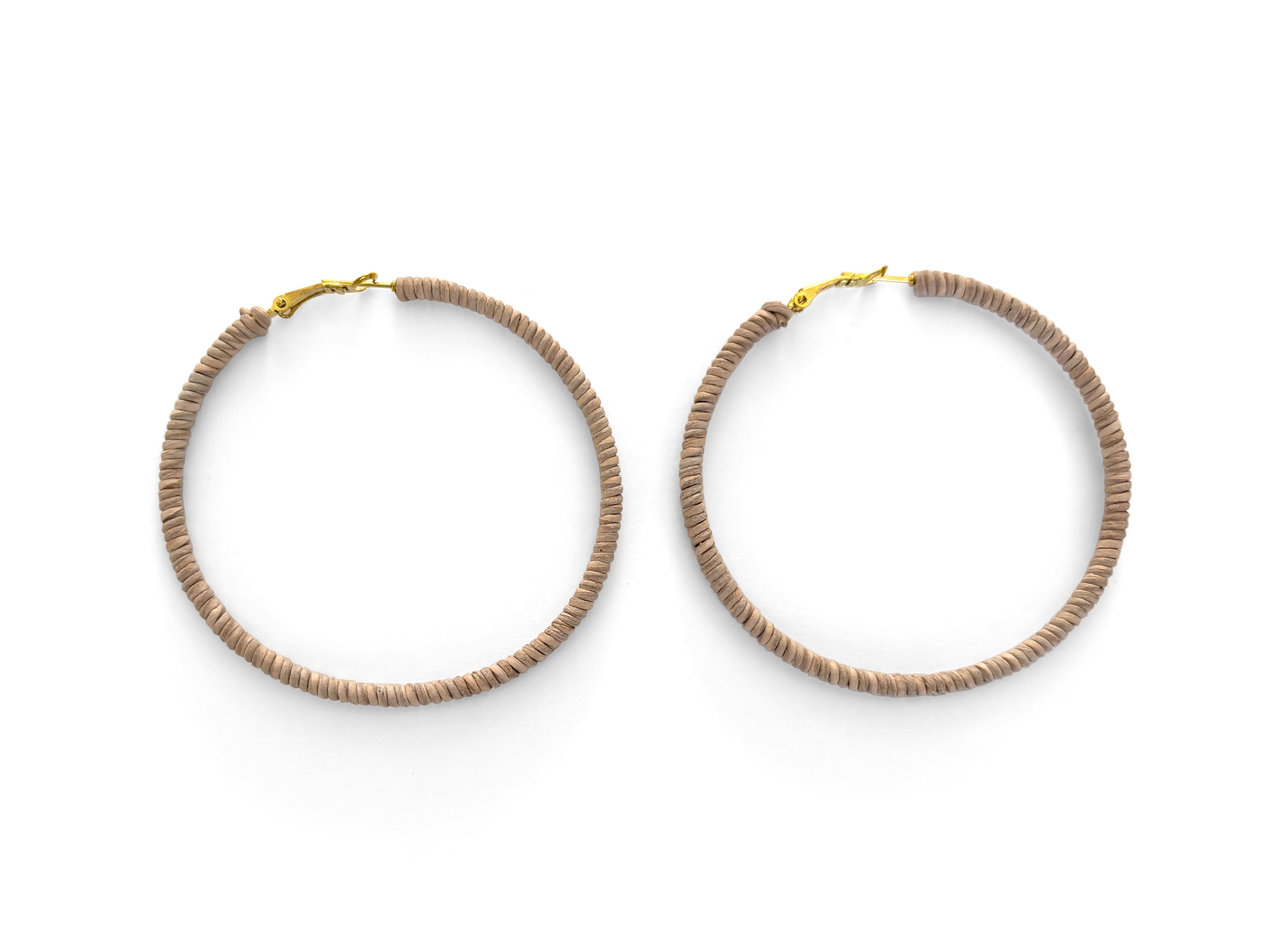 Leather-wrapped brass hoops // 2" in diameter, nickel-free.