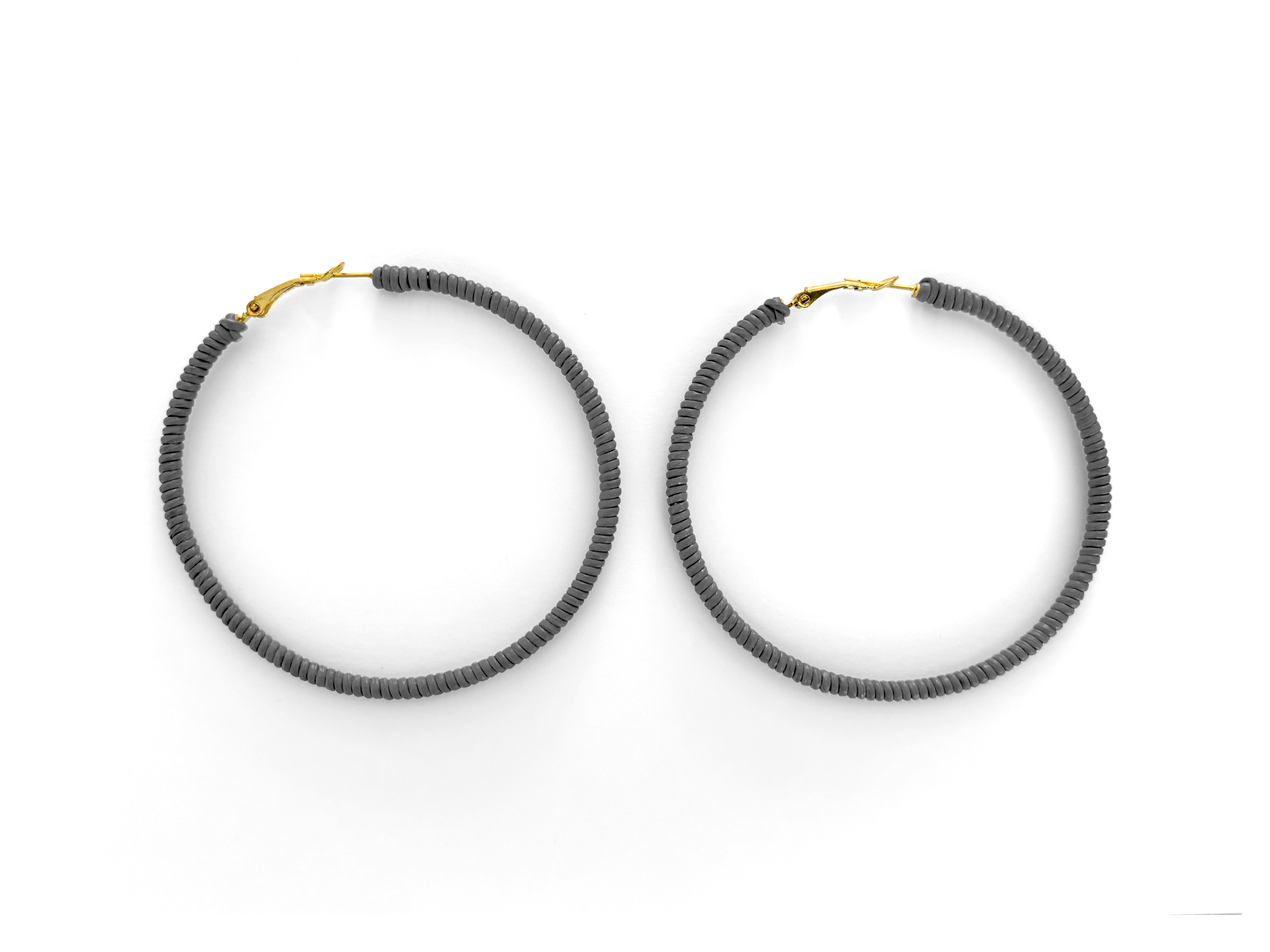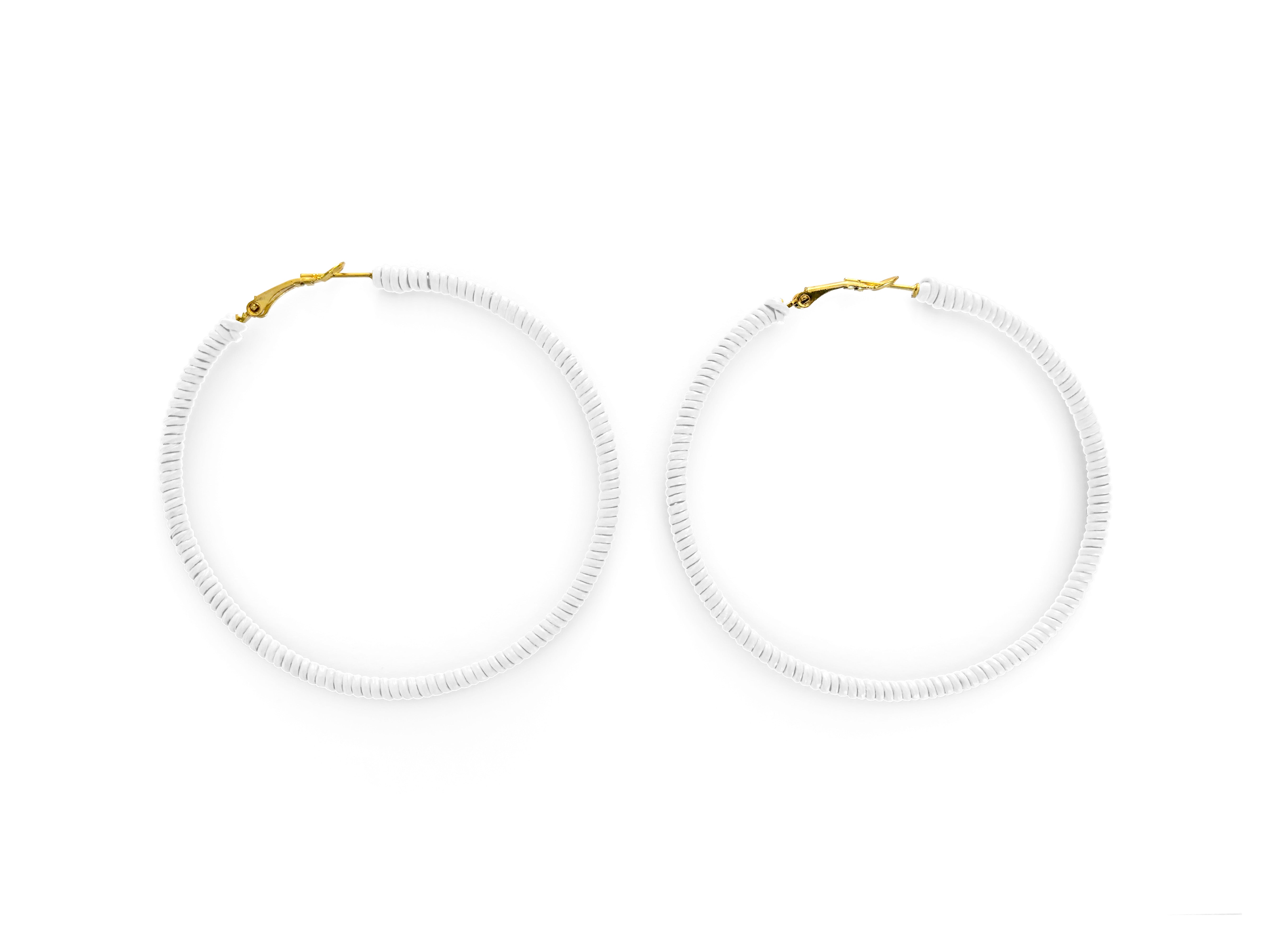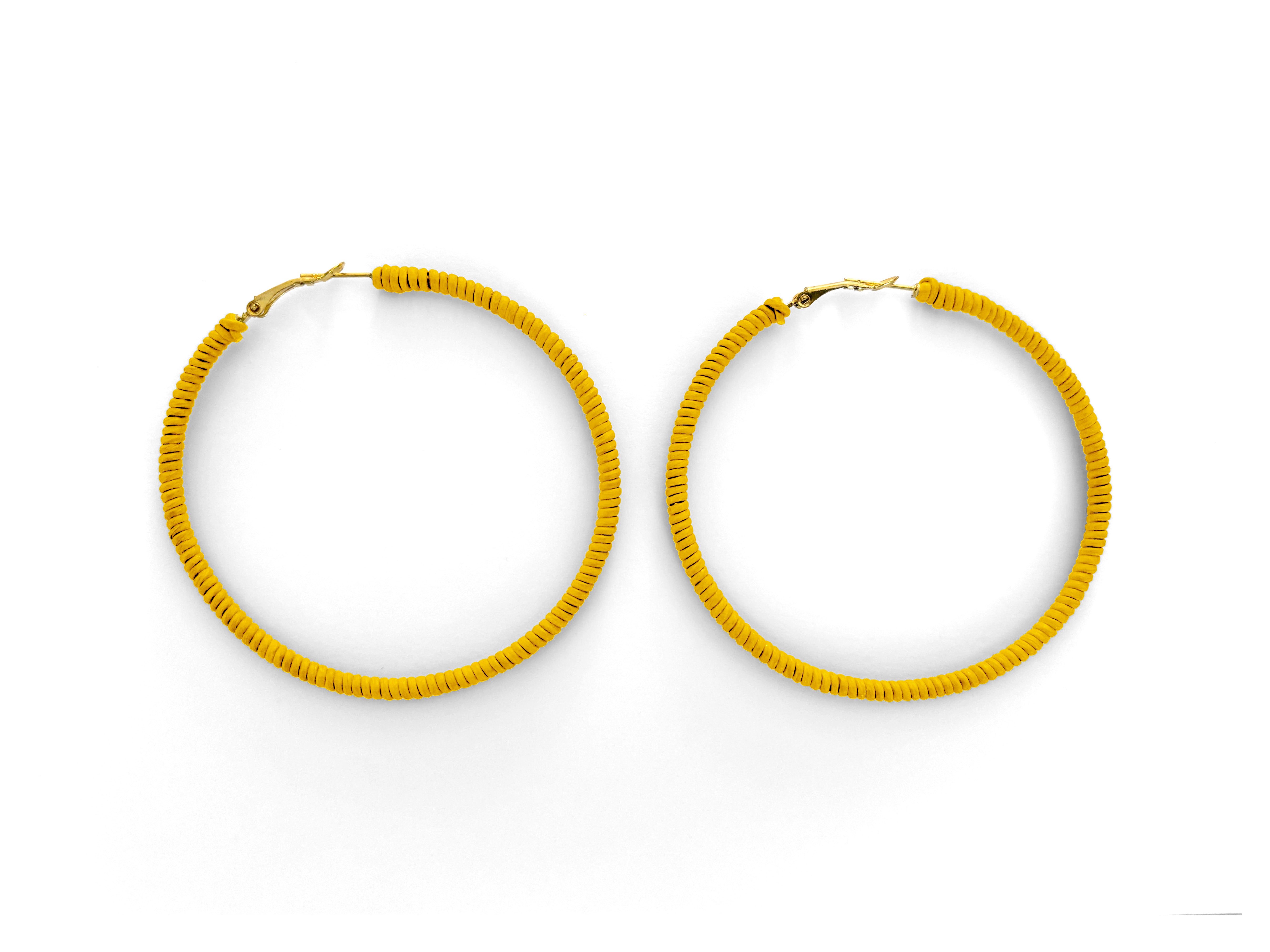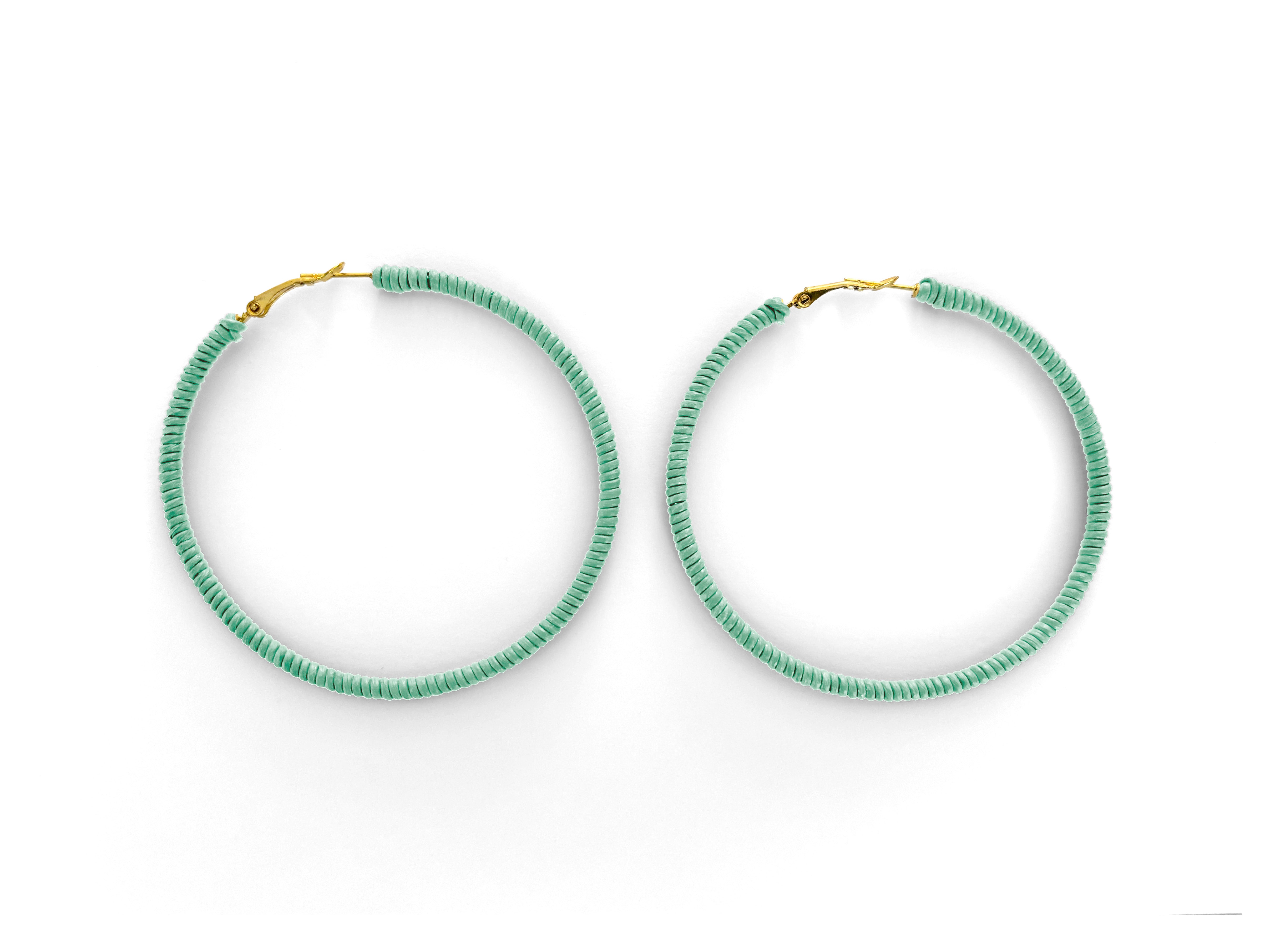 Leather-wrapped brass hoops // 2" in diameter, nickel-free.